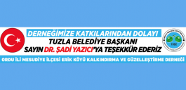 Derneğimize katkılarından dolayı Tuzla Belediye Başkanı Dr. Şadi YAZICI’ya Teşekkür ederiz…